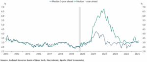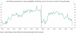 The following two charts from Apollo Global Management illustrate alternative data available to the Fed during the shutdown. The first relates to consumer inflation expectations and the second relates to employment expectations.